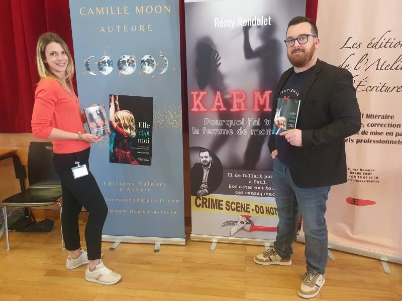 On ne va pas se voiler la face, ce 12ème salon du livre de Vichy (Vichy se livre 2022) ne marquera pas les mémoires des auteurs présents, malgré une programmation extrêmement qualitative. La présence des talentueuses Camille Moon, C.S. Angéline et Val Roby, aux côtés de votre humble serviteur, n'aura pas suffi à déplacer les festivités de Pâques. Pour une raison que j'ignore, les gens auront préféré la douceur d'une belle journée ensoleillée en terrasse. Si la qualité de l'accueil des organisateurs du salon n'est pas à remettre en cause, nul doute que le choix de la date n'était pas opportun. La raison pour laquelle on a programmé un événement aussi ambitieux et aussi important pour notre saison culturelle un weekend de Pâques restera un mystère. On ne s'attardera pas sur la table ronde "comment devenir écrivain", sans avoir invité aucun auteur présent à y participer... Gros raté, donc. Le choix dans la date, mais pas que... Il régnait parmi les auteurs une ambiance étrange, mêlant déception et ennui. Se retrouver sans public dans une aussi belle salle reste déroutant, surtout quand on connait la qualité habituelle des lecteurs Vichissois. Alors reste la solidarité entre auteurs, les amitiés naissantes, les sourires et la convivialité. On tourne quelques pages, on découvre des styles et des histoires de vie. Nous autres qui connaissons un peu les codes, savons lire entre les lignes les émotions vécues et les sensibilités. C'est toujours touchant de se découvrir. Pour ma part, la rencontre du weekend sera clairement Camille Moon. Un ovni, une comète littéraire qui assume son hypersensibilité, que je chroniquerai prochainement. Qu'elle me pardonne ma blague de Donald, mais je trouve les conseils de mon ami canard toujours judicieux. Maintenant on peut bien vous le dire: